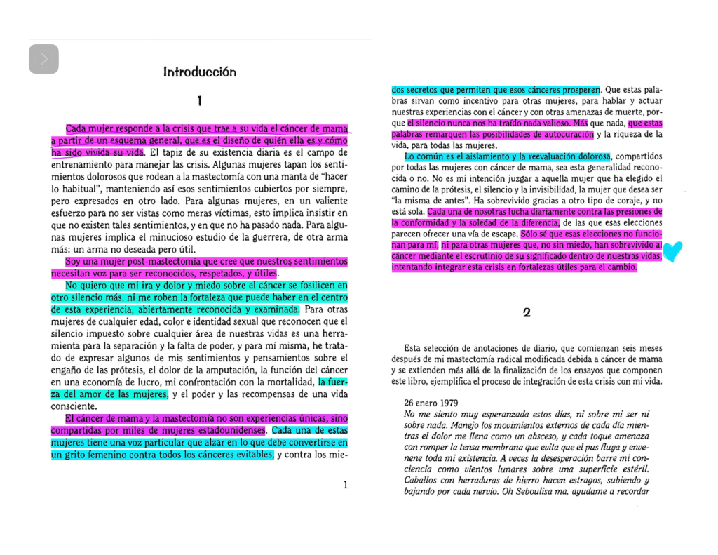 Hace unos días, por fin abrí de nuevo mi pdf (las nuevas fotocopias) de Los diarios del cáncer. Y Lorde me pareció más bella que nunca. Es impresionante todo lo que estoy descubriendo, veo muchos detalles que en su momento me pasaron desapercibidos. Sonará a cliché vacío, pero debo decir que, efectivamente, esta enfermedad es una maestra muy cabrona. Probablemente, todas las enfermedades lo son de una u otra forma, pero sólo puedo hablar con precisión de lo que me está tocando vivir.